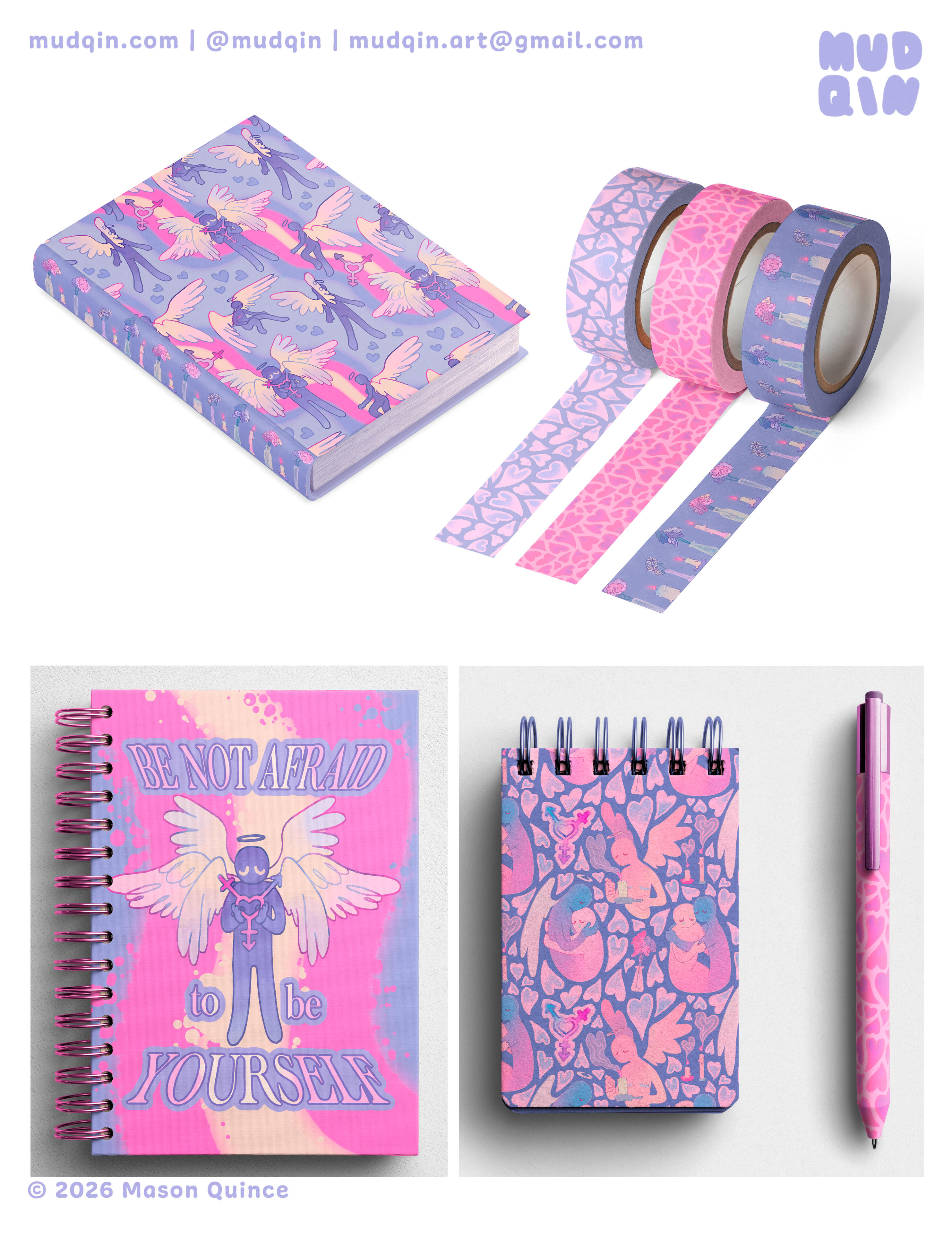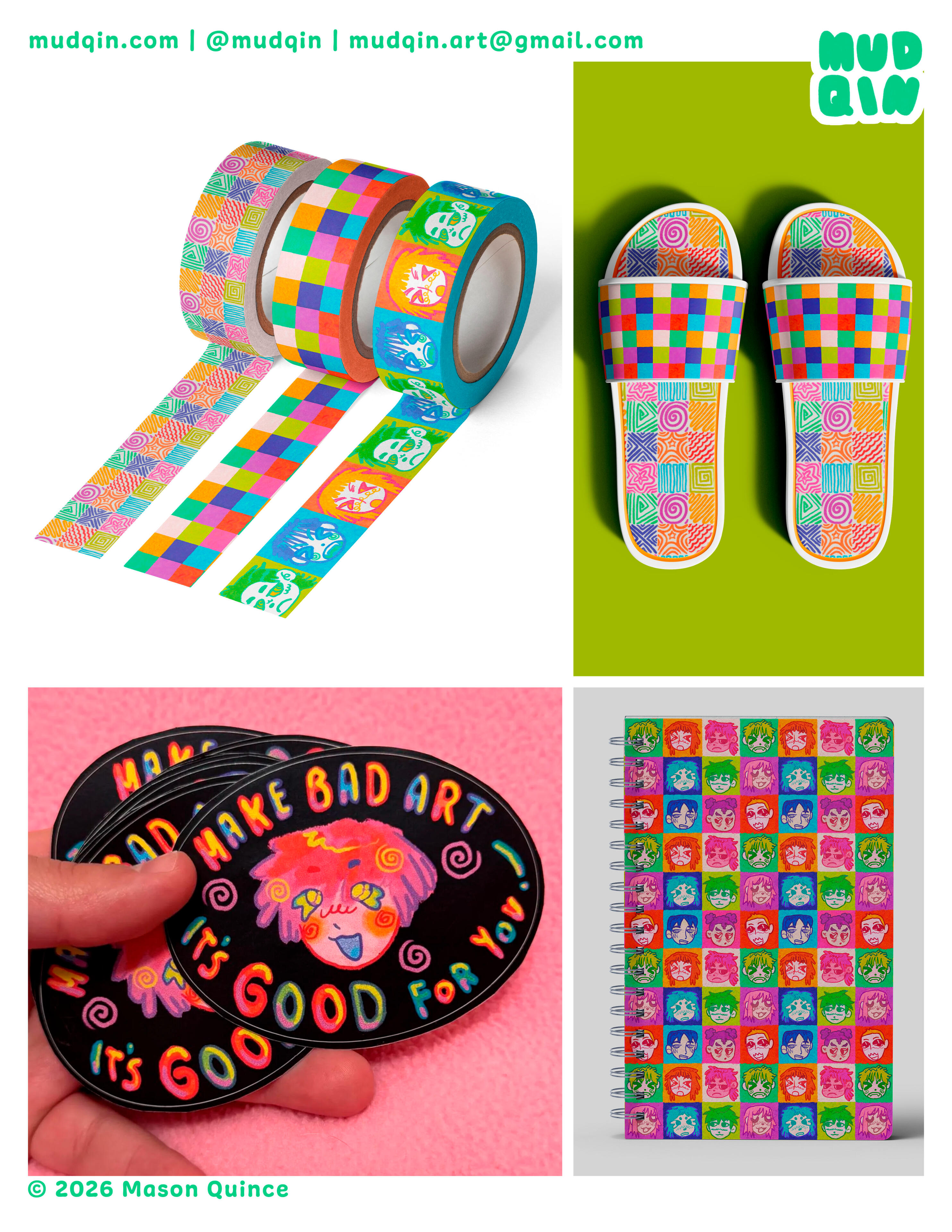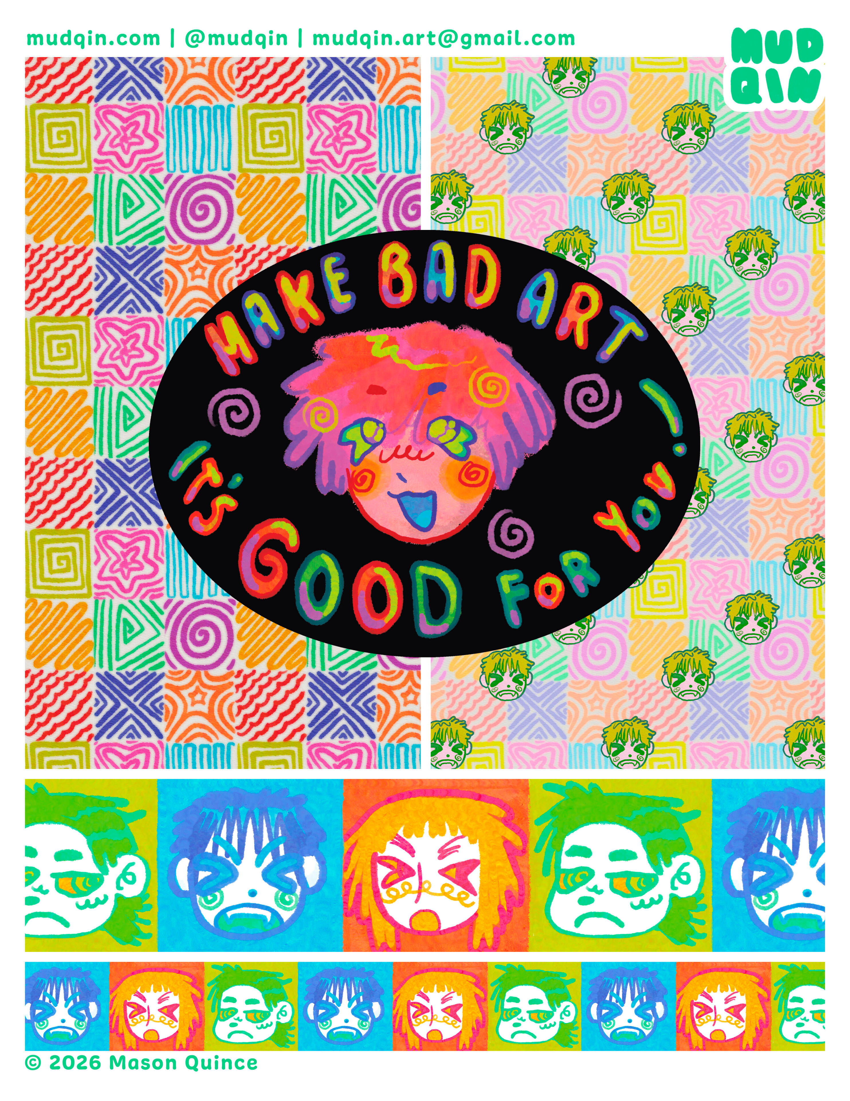 Mud, aka Mason Lin Quince, is a queer multi-media artist and illustrator working under the moniker Mudqin ('mud-kin').He strongly believes in the ability of silly, strange and playful art to help fend off day-to-day existential dread and push for a more radically empathetic world.In his personal life, Mud values civil rights and social advocacy, and strives to become a more well-rounded person every day. He also loves eating good food, spending time with friends, saying hi to dogs and playing video games.Mud earned his BFA in Illustration from SCAD (Savannah College of Art & Design) in 2026.